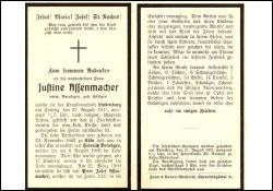 I ∞ Heinrich Berndgen, † 06.08.1906; 17 Kinder, davon 8 gestorben; II ∞ 21.03.1909 Peter Josef Assenmacher; |