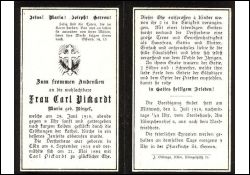 ∞ 21.05.1884 Carl Pickardt; 4 K., davon 2 †; wohnhaft im Köln; Kümpchenshof 6; |