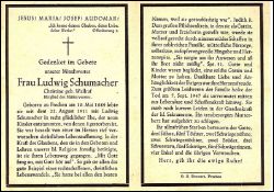 ∞ 22.08.1911 Ludwig Schumacher; 9 K., davon 1 †; Mitglies des Müttervereins; |