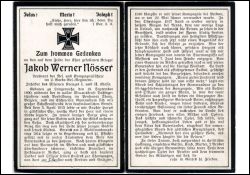 Gefallener 1. Weltkrieg; Kaufmann; ∞ 3.4.1913 Sophie Hoeps; 1 K.; am 2. Mobilmachungstag 1914 zum Militär; Einsatz im Westen (schwere Krankheit), dann Serbien und Galizien; 1916 b. Verdun, dort schwer verwundet; 1916 erneuter Einsatz: Arras, dann Ypern |