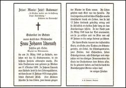 ∞ 13.01.1923 Johann Utzerath aus Hücheln; 4 K., davon 2 †; Mitglied des Müttervereins; |