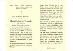 ∞ 16.05.1928 Michael Utzerath; Mitglied und langjährige Förderin des Frauenvereins St. Audomar; |