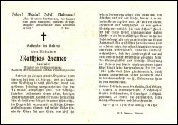 ∞ 16.02.1895 Katharina Winkelhag; 14 Kinder; Landwirt; Mitglied des Kirchenvorstandes, des kath. Gesellenvereins und des Rosenkranzvereins; |