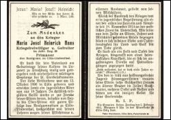 im 1. Weltkrieg gefallen; Primaner des Realgymn. Zu Cöln-Lindenthal; Kriegsfreiwilliger u. Gefreiter im Inftr. Reg. 99; |