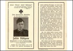 im 2. Weltkries gefallen; Vater am 04.11.1932 † durch Unglücksfall; Mutter am 24.07.1940 †; 1 Schwester; Obergefreiter in einem Kavallerie-Regt., |