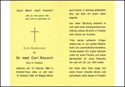 Arzt in Frechen; ∞ 12.10.1932 Magda Müller aus Frechen; nahezu 40 Jahre Dienst am Kranken; |