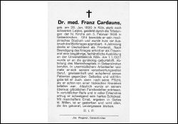 Dr. med.; 1914 approbiert; 4 J. Frontarzt im 1. Weltkrieg; Ausbildung zum Gynäkologen an der Uni-Klink Köln; zum 1.1.1927 an das Marienhospital in Gelsenkirchen berufen |