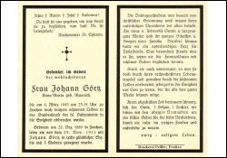 ∞ 25.11.1911 Johann Görtz; 2 Söhne, 1 Tochter; |