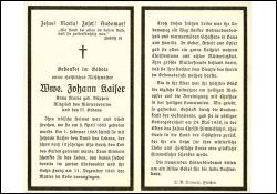 ∞ 01.02.1888 Johaaa Kaiser, 1898 †; 9 Kinder, davon 7 †; ; |