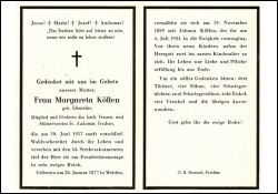 ∞ 19.11.1899 Johann Köllen, 04.07.1934 †; 9 Kinder, davon 2 †; |