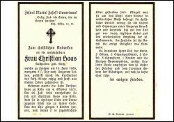 ∞ 25.07.1903 Christian Haas aus Köln; 4 Kinder, davon 2 † ; |