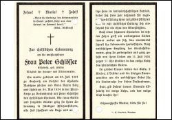 Eltern Matthias Förster und Anna Maria Holz; ∞ 24.05.1934 Peter Schlösser; 2 Kinder; |