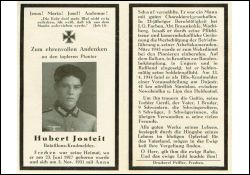 im 2. Weltkrieg gefallen; ∞ 03.11.1931 Anna Schaaf; 1 Tochter; 1 Bruder, 9 Schwestern; Bataillons-Kradmelder; |