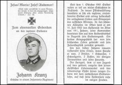im 2. Weltkrieg gefallen; Schütze in einem Infanterie-Regiment; fand mit 19 1/2 Jahren den Tod ; Soldatengrab auf dem Heldenfriedhof in Royntik; |