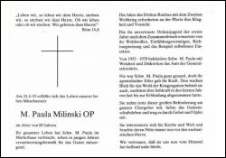 Ordensschwester Arenberger Dominikanerinnen; Eltern Paul Milinski und Martha Adelstein; |