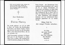 Eltern: Buchhändler Karl Henry u. Marie geb. Ruland; pflegte aufopferungsvoll ihre Eltern; ihrem Bruder, Ehrenbürger der Stadt Bonn, stand sie bei dessen Hinscheiden bei. |