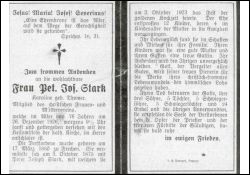 ∞ 03.10.1873 Peter Josef Stark; 12 Kinder, davon 4 † ; Mitglied des christlichen Frauen- und Müttervereins; |