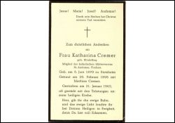 ∞ 20.02.1895 Matthias Cremer; Mitglied des katholischen Müttervereins St. Audomar, Frechen; |