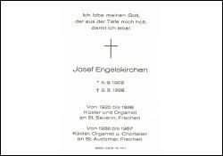Von 1920-1938 Küster und Organist an St. Severin, Frechen; von 1938-1967 Küster, Organist u. Chorleiter an St. Audomar, Frechen; |