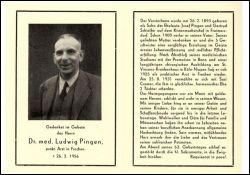 Eltern Josef Pingen und Gertrud Schieffer; 5 Geschwister; ∞ 25.08.1931 Susi Cremer; 2 Töchter; praktischer Arzt; |