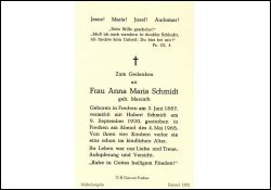 ∞ 09.09.1920 Hubert Schmidt; 4 Kinder, davon 1 †, |