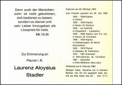 Pferrer i.R.; Priesterweihe am 29.07.1932; 1932 - 1952 Kaplan an div. Pfarreien; 1952-1972 Pfarrer in Glessen; 1972-1981 Subsidiar in Rath-Heumar; ab 1981 Subsidiar in Köln-Mülheim; |