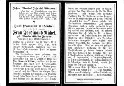 ∞ 6.10.1868 Ferdinand Nickel; 48 Jahre als Bezirkshebamme tätig |