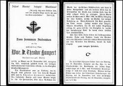 ∞ 29.8.1876 Dr. Theodor Humpertz, †11.5.1899; im März 1914 starb eine Tochter (Ordensschwester im Kloster der ewigen Anbetung zu Bonn-Endenich) |