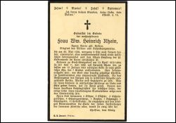 ∞ 11.07.1896 mit Heinrich Rhein, 15.01.1923 †; 7 Kinder; Mitglied des Mütter- und Rosenkranzvereins; |