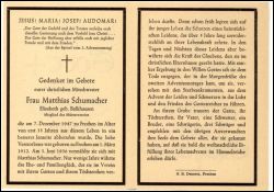 ∞ 03.06.1936 mit Matthias Schumacher; 1 Tochter; Mitglied des Müttervereins; |