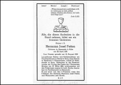 Eltern: H.J.Fetten u.Marg.geb.Kirsch; 2 Brüder Priester; Priesterweihe 10.8.1916; Relig.-Lehrer Usulinenkl. Hersel; Pfarrer in Ittenbach; Ruhestand in Bonn, beerdigt in Stommeln |