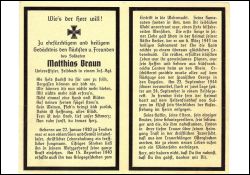 Gefallener 2. Weltkrieg; ∞ Maria Forestier; Tochter Ursula; Wohnort: Königstädten; Druck in Bingen |