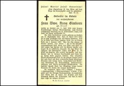 ∞ 18.04.1874 mit Anton Gimborn, 05.01.1920 †; 13 Kinder, davon bereits 7 †; |