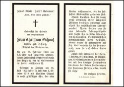 ∞ 05.10.1913 mit Christian Schaaf; 4 Kinder im fühen Kindesalter gestorben; Mitglied des Müttervereins; |