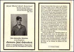 Eltern Hermann Josef Schnackertz und Christina geb. Roggé; Obergefreiter, gestorben in Kriegsgefangenschaft zu Belgrad (Jugoslawien) |