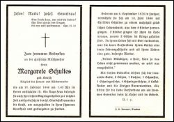 ∞ 18.06.1899 mit Christian Schultes; 6 Kinder, davon 3 verstorben; Mitglied des Frauen- und Müttervereins; |