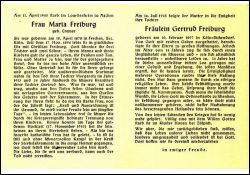 ∞ am 17.11.1894 mit Christian Freiburg; 3 Töchter, 2 Söhne; Tochter Gertrud Freiburg 10.02.1897 in Köln-Bickendorf - 16.07.1945 † im Kloster Hoven bei Zülpich; |