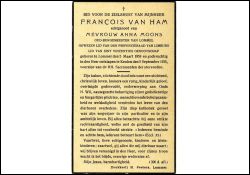 ∞ mit Anna M∞ns; Alt-Bürgermeister von Lommel; Ehemaliges Mitglied des Provinzialrats von Limburg; Mitglied der St. Vinzens-Bruderschaft; auf Reisen Entschlafen; |