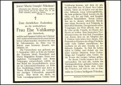 Eltern Jakob Steinebach und Maria Magdalena Rösgen; Lehrerin an der Volksschule in Köln-Dellbrück; ∞ mit Emil Vahlkamp, 24.06.1890 †; |