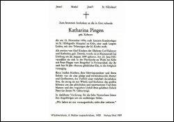 Eltern Carl Kalteyer und Katharina geb. Destrée; ∞ am 21.06.1921 in Wahn bei Köln mit Peter Pingen vom Bergerhof in Freimersdorf; 2 Kinder; |