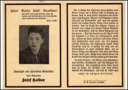 Gefallener 2. Weltkrieg; Eltern Peter Halber und Maria Vogel; März 1944 wurde er Soldat; Gefreiter; |