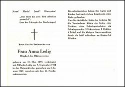 ∞ mit Wilhelm Ledig am 09.09.1922; Mitglied des Müttervereins; |