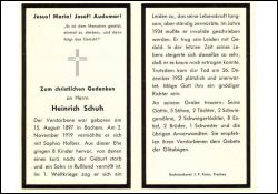 ∞ am 02.11.1919 mit Sophia Halber; 8 Kinder, davon 1 kurz nach der Geburt † , 1 Sohn in Rußland vermißt; |