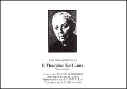 Salvatorianer, Odensprofeß am 28.08.1932, Priesterweihe am 18.07.1937 in Rom; |
