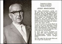 Eltern Christian Braschoß und Elisabeth Päffgen; ∞ am 18.05.1920 mit Anna Maria Meller vom Weidthof in Großkönigsdorf; 2 Kinder; Landwirt; |