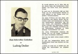 Eltern Josef Decker und Anni geb. Krapp; starb an den Folgen eines Verkehrsunfalles auf dem Wege von der Garnisonstadt Wetzlar in seine Heimat; |