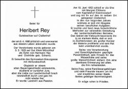 Eltern Hermann Rey und Clothilde geb. Schantz; ∞ am 19.06.1952 mit Margret Zillikens vom Kapitelshof Kleintroisdorf; Gutsbesitzer auf Claßenhof; |