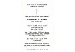 Schwester M. Siarda, geb. Taufenbach | Vorname: |