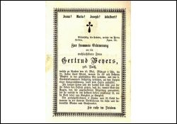 im 91. Jahre ihres Alters gestorben, davon 59 Jahre mit Johann Weyers in glücklicher Ehe verlebt; 5 Kinder; |