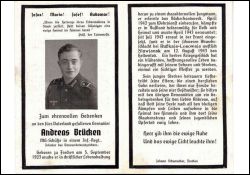 Gefallener 2. Weltkrieg; erlernte Bäckerhandwerk; 04.1942 zum Wehrdienst, MG-Schütze in einem Inf.-Regt.; 4 Geschwister; |